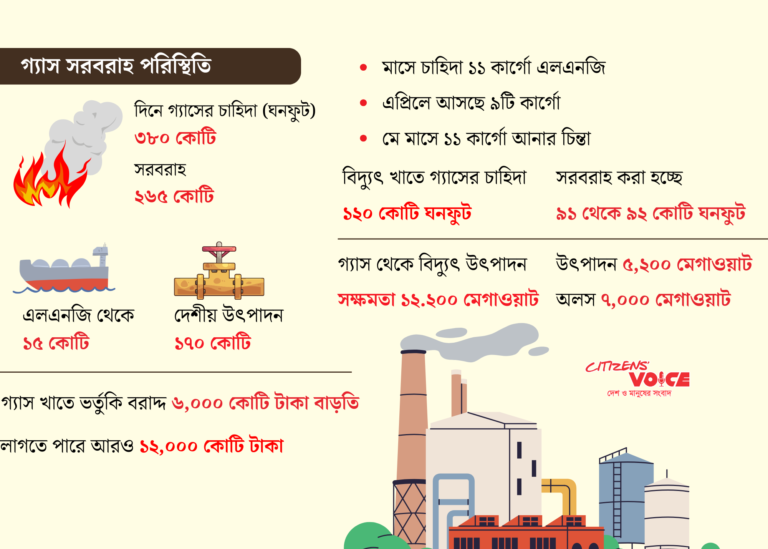 বৈশ্বিক জ্বালানি সংকটের প্রভাবে বাংলাদেশে গ্যাস সরবরাহ ধরে রাখা কঠিন হয়ে উঠেছে। তরলীকৃত প্রাকৃতিক গ্যাস (এলএনজি) আমদানি দ্বিগুণ দামে হলেও চাহিদা পূরণ করা যাচ্ছে না। ফলে গ্যাসচালিত বিদ্যুৎকেন্দ্রের অর্ধেক ক্ষমতা অপ্রয়োজনীয়ভাবে অলস বসিয়ে রাখা হচ্ছে। অন্যদিকে কয়লা থেকে বিদ্যুৎ উৎপাদন কম থাকায় লোডশেডিং বাড়ছে।
