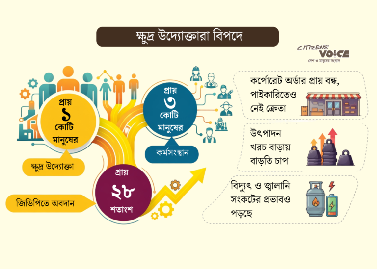 দেশের প্রায় সব ক্ষুদ্র ও মাঝারি উদ্যোক্তা একই অভিজ্ঞতার কথা জানিয়েছেন। মধ্যপ্রাচ্যের যুদ্ধের প্রভাব দেশের এসএমই খাতেও পড়েছে। এক মাস ধরে বিদেশি ক্রয়াদেশ কমেছে, রপ্তানি আয়েও প্রভাব পড়েছে। জ্বালানি সংকট উৎপাদন ব্যাহত করছে। সরকারি সিদ্ধান্তে রাতে দোকানপাট বন্ধ রাখার ফলে অভ্যন্তরীণ বিক্রিও কমছে। উৎপাদন খরচ বেড়ে ও বিক্রি কমে যাওয়ায় ক্ষুদ্র উদ্যোক্তারা হিমশিম খাচ্ছেন।