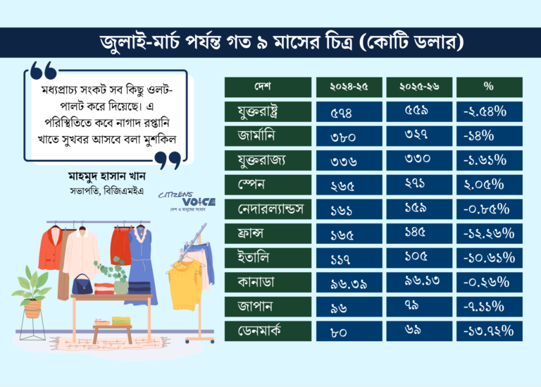 ইপিবির এই পরিসংখ্যান বলছে, যুক্তরাষ্ট্র ও যুক্তরাজ্যের মতো বড় বাজারসহ প্রায় সব গুরুত্বপূর্ণ গন্তব্যেই রপ্তানি প্রবৃদ্ধি ধরে রাখা যাচ্ছে না। ফলে সামগ্রিকভাবে দেশের প্রধান রপ্তানি খাত চাপের মুখে পড়েছে।