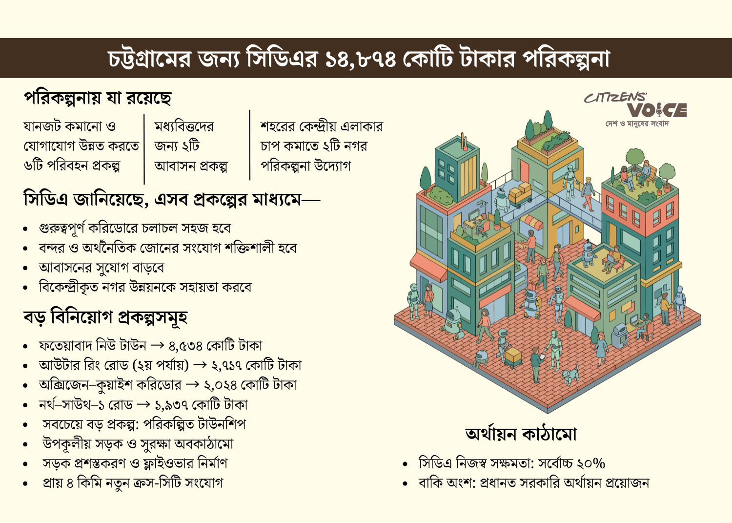 বিশ্লেষকরা বলছেন, চট্টগ্রামের অর্থনৈতিক গুরুত্ব বিবেচনায় এই ধরনের সমন্বিত উন্নয়ন পরিকল্পনা সময়োপযোগী। তবে প্রকল্প অনুমোদন ও বাস্তবায়নে দীর্ঘসূত্রতা, অর্থায়ন সংকট এবং সমন্বয়ের ঘাটতি কাটাতে না পারলে প্রত্যাশিত সুফল মিলবে না। নগর পরিকল্পনায় ধারাবাহিকতা, স্বচ্ছতা ও জবাবদিহিতা নিশ্চিত করা গেলে এই বিনিয়োগই চট্টগ্রামকে একটি আধুনিক মেগাসিটিতে রূপান্তরের ভিত্তি তৈরি করতে পারে।