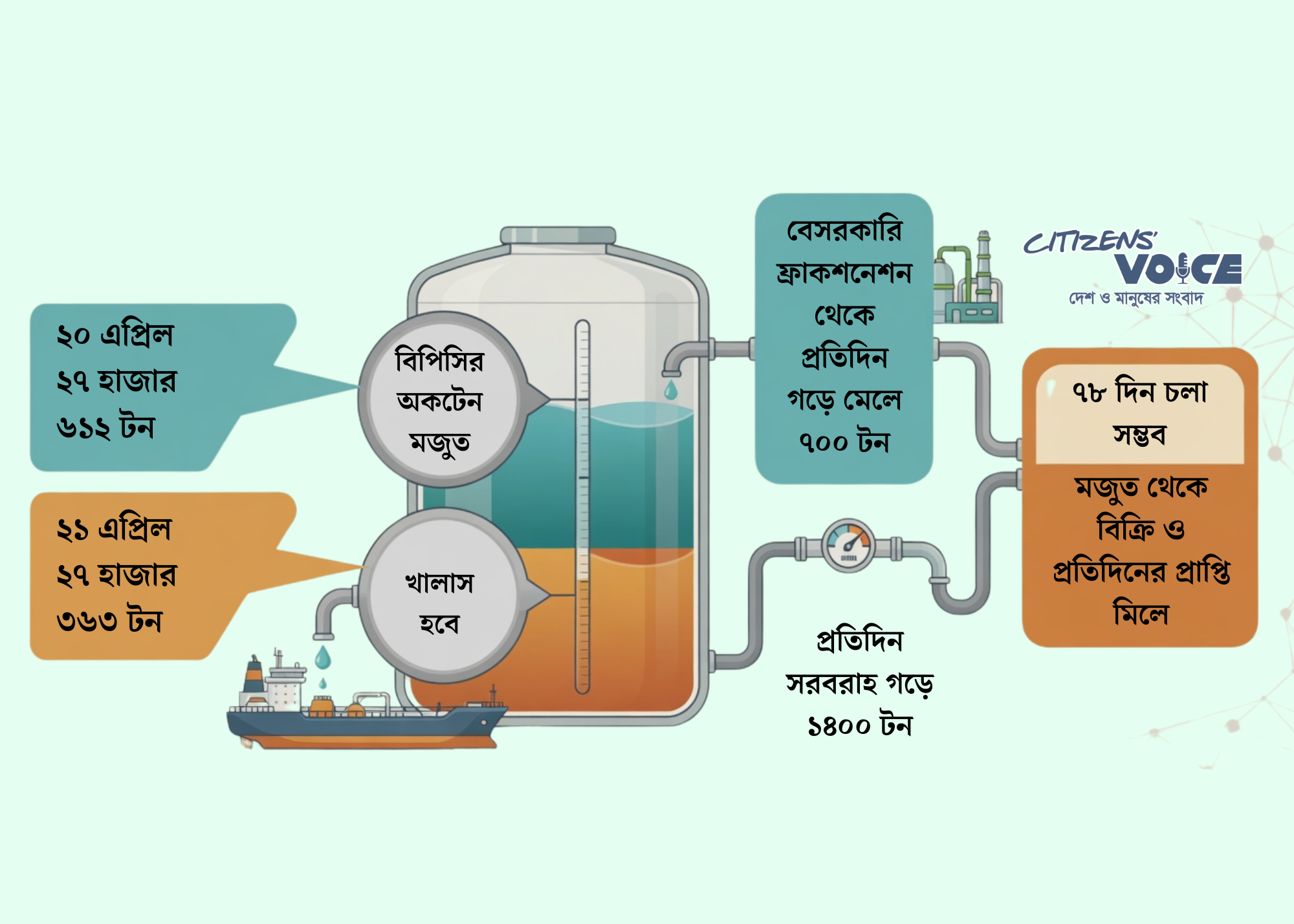 তিনি আরও বলেন, বৈশ্বিক পরিস্থিতি, বিশেষ করে মধ্যপ্রাচ্যের অস্থিরতার কারণে জ্বালানি বাজারে চাপ তৈরি হয়েছে। এই অবস্থায় বিপিসিকে সরবরাহ ও মজুত—দুটোই সতর্কভাবে সামলাতে হচ্ছে। একইসঙ্গে বেসরকারি প্ল্যান্টগুলোকেও সমন্বিতভাবে কাজ করা প্রয়োজন বলে তিনি মন্তব্য করেন।