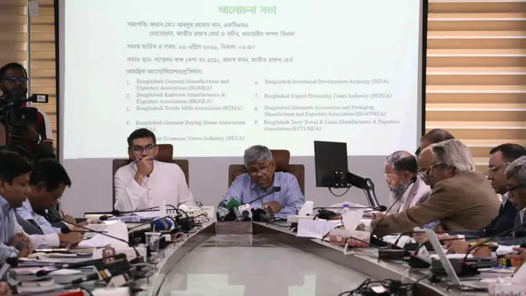 আজ রোববার (২৬ এপ্রিল) রাজধানীর এনবিআর ভবনে অনুষ্ঠিত প্রাক-বাজেট আলোচনা সভায় তিনি এসব তথ্য তুলে ধরেন। সভায় বিকেএমইএ, বিটিএমএ, বিজিএপিএমইএ ও বিজিবিএসহ বিভিন্ন ব্যবসায়ী সংগঠনের শীর্ষ প্রতিনিধিরা উপস্থিত ছিলেন।