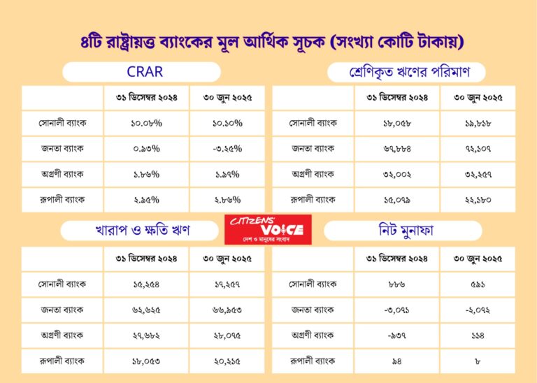 বিশ্লেষকরা সতর্ক করে বলছেন, এই ঋণ ও মূলধন সংক্রান্ত সমস্যা শুধু প্রতিটি ব্যাংকের অভ্যন্তরীণ দুর্বলতা নয়, দেশের আর্থিক স্থিতিশীলতার জন্য বড় ধরনের সতর্কবার্তা। দীর্ঘমেয়াদে খেলাপি ঋণ নিয়ন্ত্রণ, প্রভিশন পূরণ এবং শক্তিশালী কর্পোরেট গভর্ন্যান্স প্রতিষ্ঠা না করলে রাষ্ট্রায়ত্ত ব্যাংকগুলো পুনরুদ্ধারে সময় লাগবে এবং আর্থিক বাজারে নেতিবাচক প্রভাব পড়তে পারে। অর্থাৎ, ব্যাঙ্কগুলোকে শুধুমাত্র ক্ষতি কমানো নয়, বরং স্থায়ীভাবে শক্তিশালী ও ঝুঁকি প্রতিরোধী করে তোলা জরুরি। এটি সরকারের নীতি, ব্যাংক প্রশাসন ও নিয়ন্ত্রক সংস্থার সমন্বিত উদ্যোগ ছাড়া সম্ভব নয়।