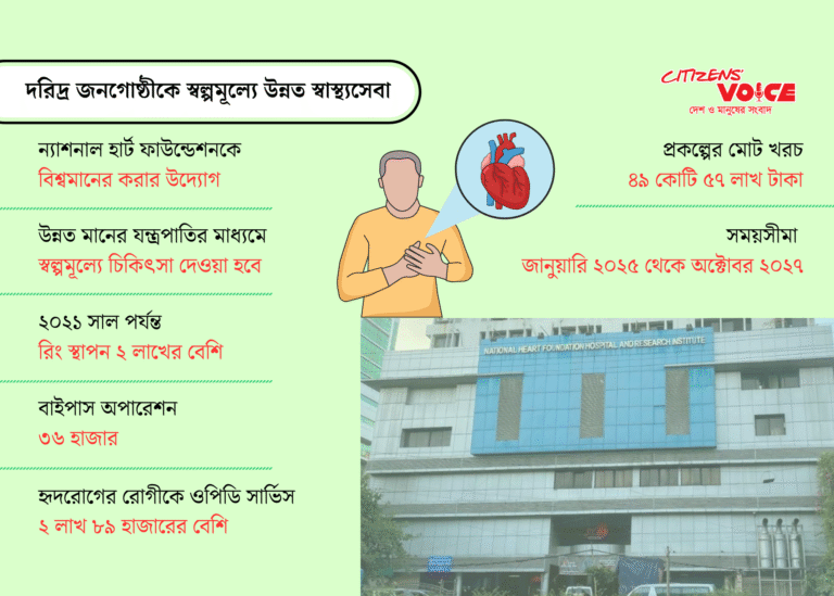 ন্যাশনাল হার্ট ফাউন্ডেশন হাসপাতালে আধুনিক যন্ত্রপাতি সংযোজন ও বিশ্বমানের চিকিৎসাসেবা প্রদানের উদ্যোগ নেওয়া হয়েছে। নতুন প্রকল্পের লক্ষ্য হলো দরিদ্র জনগোষ্ঠীকে স্বল্পমূল্যে উন্নত ও আধুনিক মানের কার্ডিয়াক বিশেষায়িত চিকিৎসাসেবা দেওয়া। পাশাপাশি প্রতিদিন ৩০ শতাংশ দরিদ্র রোগীকে বিনামূল্যে চিকিৎসা দেওয়া হবে।