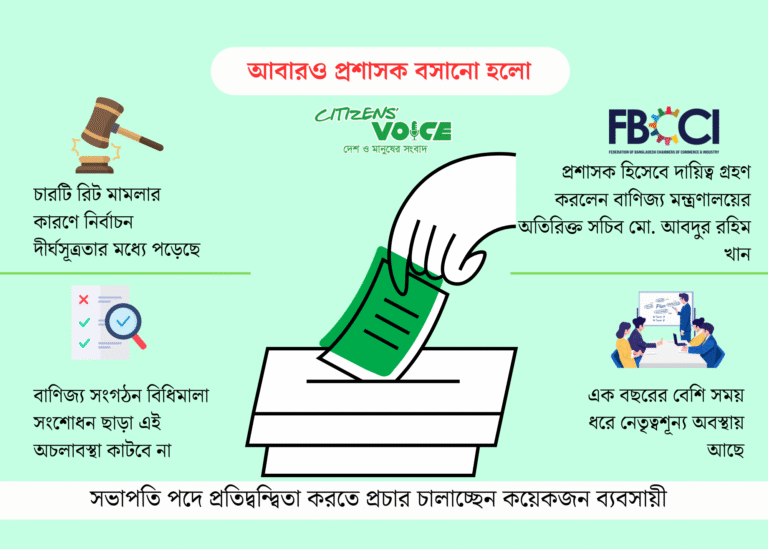 বাণিজ্য মন্ত্রণালয়ের নির্বাচন ও আপিল বোর্ড গঠন বেআইনি অভিযোগে, নিবন্ধন ফি বৃদ্ধি এবং মনোনীত পরিচালক নিয়োগ প্রক্রিয়া চ্যালেঞ্জ করে ব্যবসায়ীরা রিট করেন। সাবেক প্রশাসক হাফিজুর রহমান বলেন, মামলা চললেও নির্বাচন করা যায়। বাণিজ্য সংগঠন বিধিমালা সংশোধনের প্রক্রিয়াও চলমান।