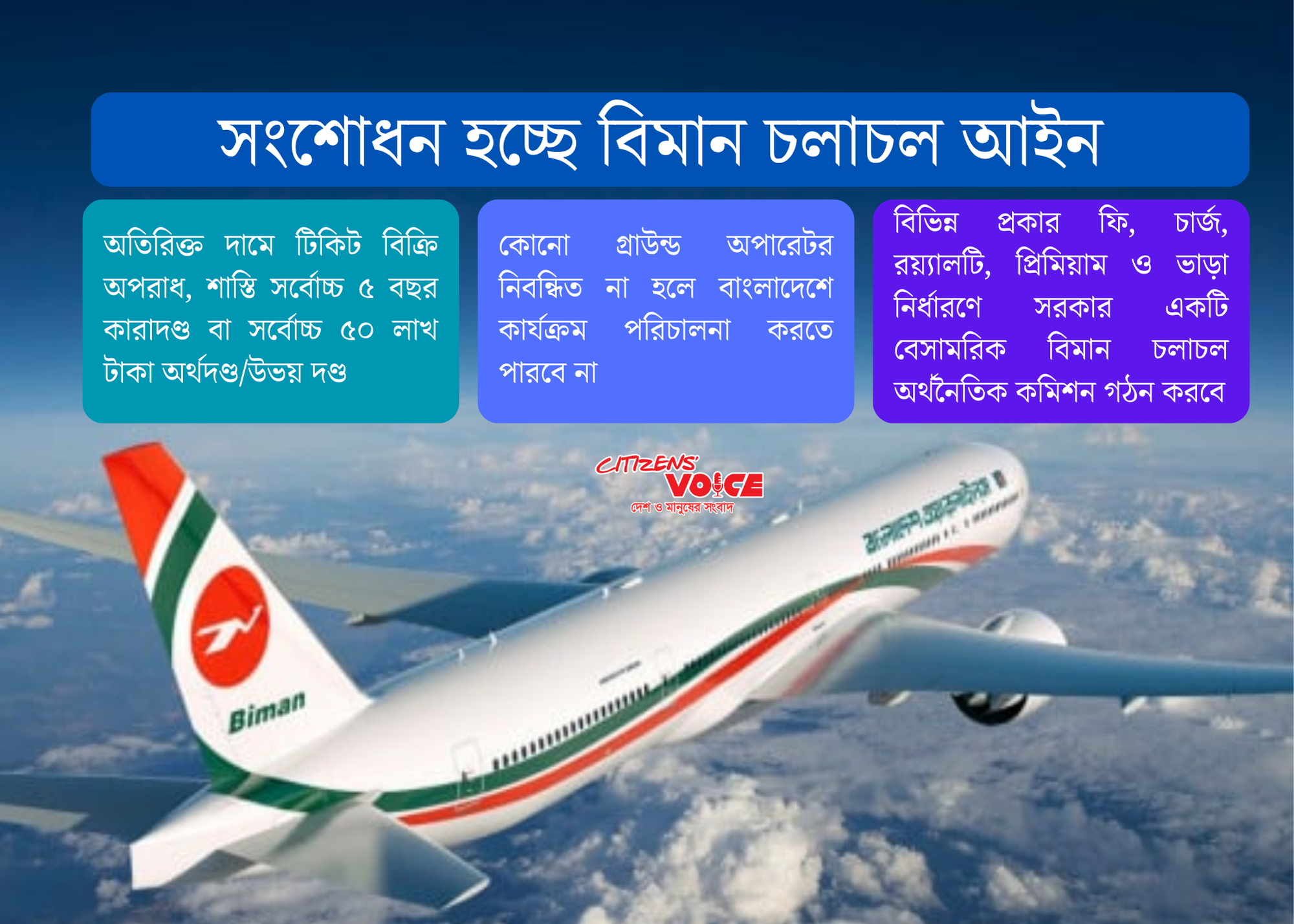নতুন খসড়া অধ্যাদেশ প্রয়োগে বিমান যাত্রীদের অধিকার সুরক্ষা এবং টিকিটের মূল্য নিয়ন্ত্রণে বিশেষ ভূমিকা রাখবে বলে মন্ত্রণালয় আশা করছে। বেসামরিক বিমান পরিবহন ও পর্যটন মন্ত্রণালয় উড়োজাহাজের টিকিট সিন্ডিকেট নিয়ন্ত্রণে ‘বেসামরিক বিমান চলাচল (সংশোধন) অধ্যাদেশ, ২০২৫’ খসড়া করেছে। খসড়া অধ্যাদেশে বিভিন্ন প্রকার ফি, চার্জ ও ভাড়া নির্ধারণের জন্য বেসামরিক বিমান চলাচল অর্থনৈতিক কমিশন গঠনের প্রস্তাব রাখা হয়েছে। এছাড়া খসড়া অনুযায়ী, কোনো গ্রাউন্ড অপারেটর নিবন্ধিত না হলে বাংলাদেশে কার্যক্রম পরিচালনা করতে পারবে না।