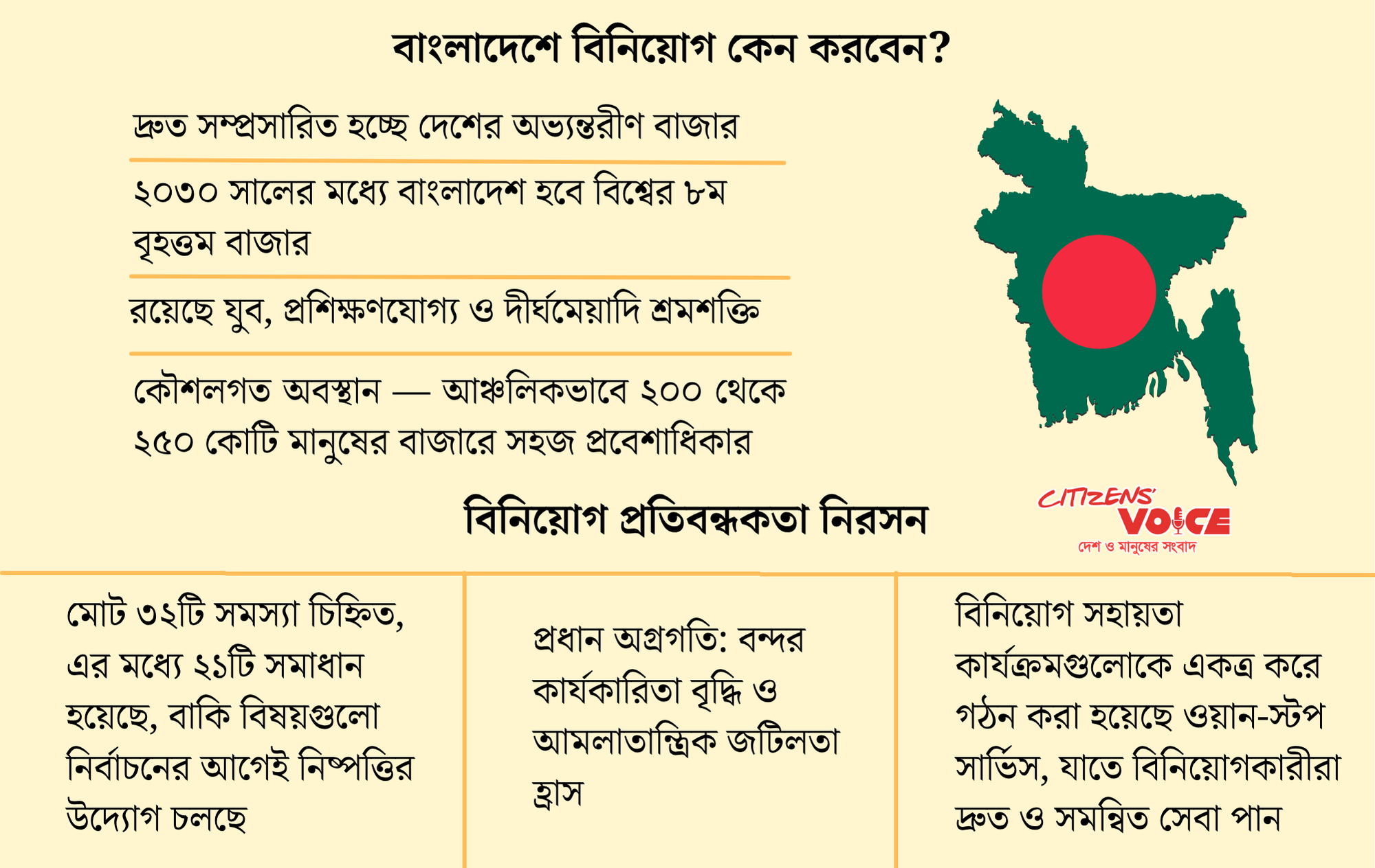 প্রশ্ন: বিদেশি বিনিয়োগকারীরা কেন বাংলাদেশে বিনিয়োগ করবে? তিনটি মূল পয়েন্ট কী?