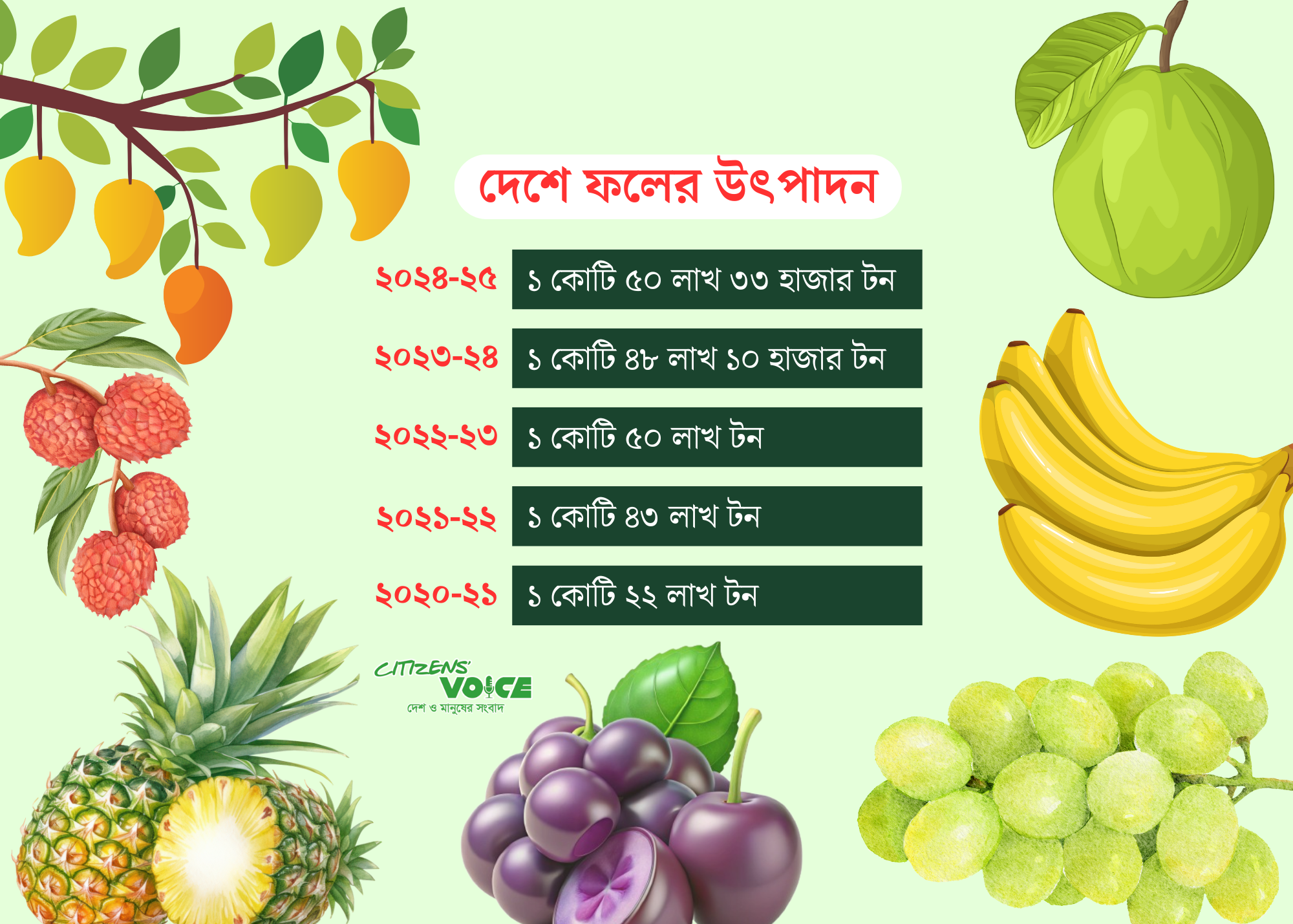 বিশ্লেষকরা বলছেন, সরকারি প্রকল্প ও নীতি-সহায়তার কারণে দেশে ফলের উৎপাদন বৃদ্ধি পাচ্ছে, বাণিজ্যিক চাষাবাদ সম্প্রসারিত হচ্ছে এবং ফলের বাজার আরও শক্তিশালী হচ্ছে।