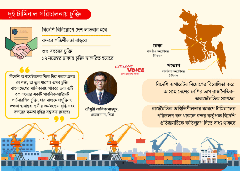 বন্দরের বিভিন্ন টার্মিনালে বিদেশি অপারেটর নিয়োগের বিরোধিতা দীর্ঘদিনের। রাজনৈতিক ও অরাজনৈতিক বেশির ভাগ সংগঠন বিষয়টি নিয়ে আন্দোলন করে আসছে। এমন পরিস্থিতিতেই সরকার সম্প্রতি পতেঙ্গার লালদিয়া কনটেইনার টার্মিনাল এবং ঢাকার পানগাঁও টার্মিনাল নির্মাণ ও পরিচালনায় দুটি বিদেশি প্রতিষ্ঠানের সঙ্গে চুক্তি করেছে। সরকারের দাবি, এই চুক্তি বন্দরের গতিশীলতা বাড়াবে এবং অর্থনীতিতে ইতিবাচক প্রভাব ফেলবে।