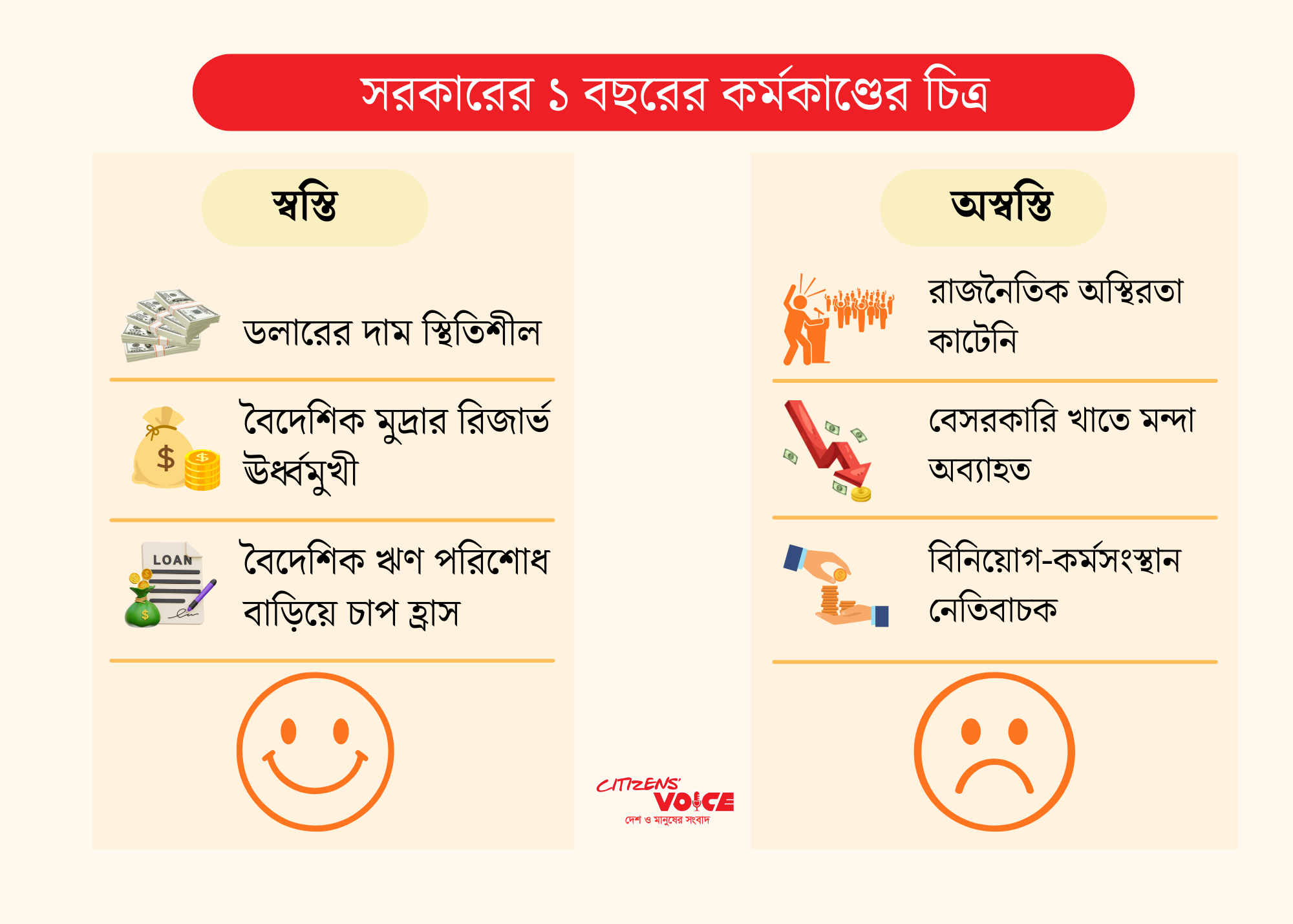 এই সরকার আইএমএফের সুপারিশ মেনে বিভিন্ন খাতে কর বাড়িয়েছে। তারপরও রাজস্ব আদায় লক্ষ্যমাত্রা অনুযায়ী বাড়েনি। রাজস্ব না বাড়লেও সরকারের ব্যয় কমেনি। বরং ব্যয় আরও বেড়েছে। ফলে উন্নয়ন ব্যয় কমিয়েও সরকারকে আর্থিক সংকট মেটাতে বেশি ঋণ নিতে হচ্ছে। ব্যাংক খাতসহ সার্বিক অর্থনীতিতে বড় ধরনের সংস্কার কার্যক্রম চলমান রয়েছে। এসব পদক্ষেপের কিছু সুফল ইতোমধ্যে দেখা যেতে শুরু করেছে। সংস্কার প্রক্রিয়া আরও এগোলে সুফল স্পষ্ট হবে বলে আশা করছে কেন্দ্রীয় ব্যাংক।