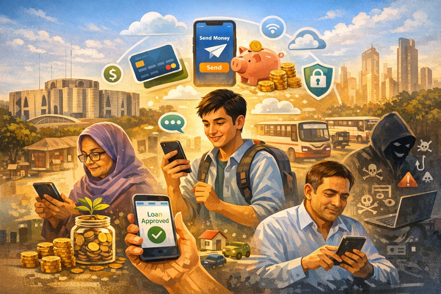 অন্যদিকে তরুণদের কাছে সবচেয়ে জনপ্রিয় হয়ে উঠছে তাৎক্ষণিক ছোট ঋণ বা ‘ন্যানো লোন’। পড়াশোনা বা চাকরির শুরুতে সীমিত আয়ের মধ্যে হঠাৎ খরচ সামলাতে এই সুবিধা অনেকের জন্য বড় ভরসা। আমরিন জানান, তাঁর এক বন্ধুর সেমিস্টার ফি জমা দেওয়ার শেষ দিনে টাকা কম পড়ে গিয়েছিল। কোনো কাগজপত্র ছাড়াই অ্যাপ থেকে ছোট অঙ্কের ঋণ নিয়ে কাজ সেরে ফেলেছিল সে, পরে সময়মতো পরিশোধও করেছে। প্রবীণরা যেখানে ডিজিটাল ওয়ালেটকে ব্যাংকের বিকল্প শাখা হিসেবে দেখছেন, তরুণরা সেখানে একে দেখছেন জরুরি সময়ের নিরাপত্তা জাল হিসেবে।