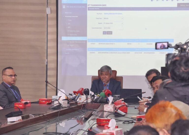 আজ বুধবার রাজধানীর আগারগাঁওয়ের রাজস্ব ভবনে আয়োজিত অনুষ্ঠানে তিনি এ তথ্য জানান। অনুষ্ঠানটি অনলাইনে ভ্যাট রিফান্ড চালুর জন্য আয়োজন করা হয়েছিল। অনুষ্ঠানে ঢাকাস্থ তিনটি ভ্যাট কমিশনারেটের তিনজন করদাতার ব্যাংক অ্যাকাউন্টে সরাসরি ৪৫ লাখ ৩৫ হাজার টাকা ভ্যাট ফেরত প্রদান করে নতুন অনলাইন রিফান্ড প্রক্রিয়া উদ্বোধন করা হয়।