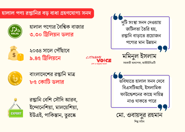 আইইউবিএটির সহকারী অধ্যাপক মমিনুল ইসলাম বলেন, বিশ্বের অন্যান্য দেশে হালাল সনদ সাধারণত একটি সংস্থা দেয়। বাংলাদেশে দুটি সংস্থা থেকে সনদ পাওয়ার ফলে জটিলতা তৈরি হয়। রপ্তানি বাড়াতে উদ্যোক্তাদের পণ্যের মান উন্নয়ন ও প্রয়োজনীয় নীতিমালা তৈরি করতে হবে।