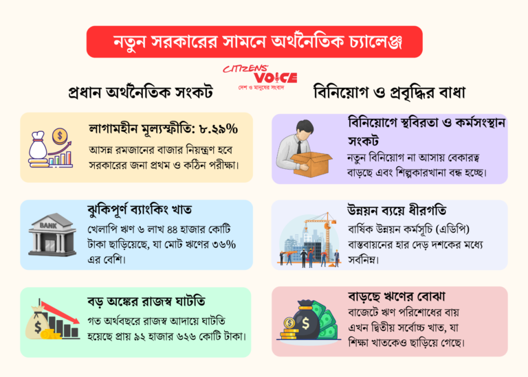 এই পরিস্থিতিতে ব্যাংক খাতকে স্থিতিশীল করা, আমানতকারীদের আস্থা ফেরানো এবং খেলাপি ঋণ আদায় নিশ্চিত করা নতুন সরকারের জন্য একটি কঠিন আর্থিক চ্যালেঞ্জ হয়ে দাঁড়িয়েছে।