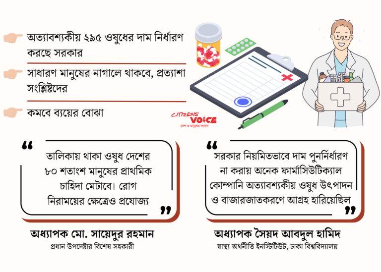 ঢাকা বিশ্ববিদ্যালয়ের স্বাস্থ্য অর্থনীতি ইনস্টিটিউটের অধ্যাপক সৈয়দ আবদুল হামিদ বলেন, দীর্ঘদিন ধরে সরকার নিয়মিতভাবে ওষুধের দাম পুনর্নির্ধারণ না করায় অনেক ওষুধ কোম্পানি অত্যাবশ্যকীয় ওষুধ উৎপাদন ও বাজারজাতকরণে আগ্রহ হারিয়ে ফেলেছিল। দাম স্থবির থাকায় কোম্পানিগুলো এমন ইন্ডিকেটিভ প্রাইস বা আইপি ওষুধে বেশি জোর দিত, যেগুলোর দাম তারা নিজেরাই নির্ধারণ করতে পারে। চিকিৎসকরাও এসব ওষুধ বেশি মাত্রায় প্রেসক্রাইব করতেন। এর ফলে বাজারে কম দামের অত্যাবশ্যকীয় ওষুধ পাওয়া যেত না। সাধারণ মানুষ বাধ্য হয়ে তুলনামূলক বেশি দামের ওষুধ কিনতে হতো।