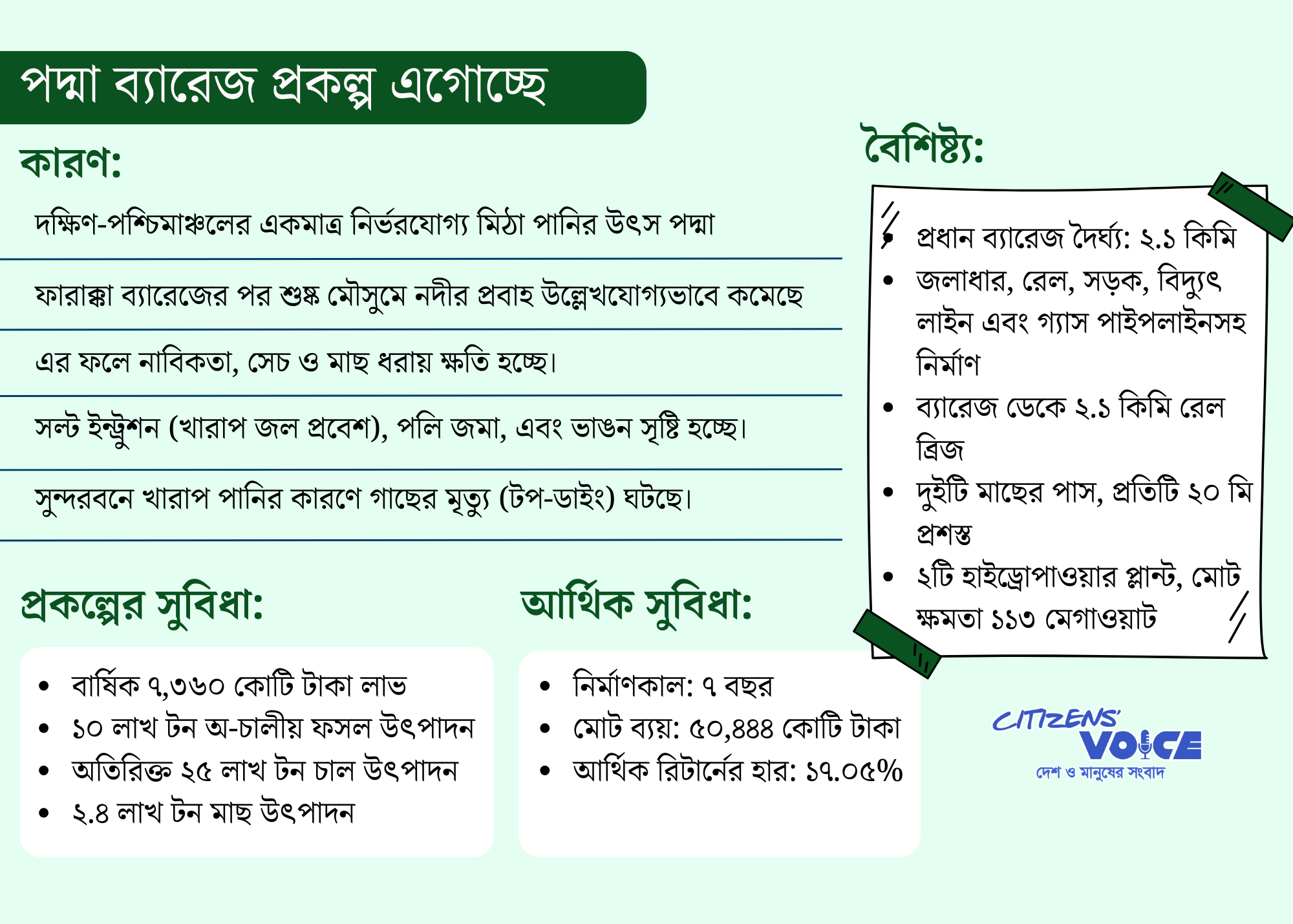 তিনি সতর্ক করেছেন, বড় অবকাঠামোর ক্ষেত্রে নদীর তলদেশ উঁচু হওয়া, পলি জমা এবং পরিবেশগত ঝুঁকি থাকতে পারে। তবে উন্নত নকশা ও প্রযুক্তি ব্যবহার করলে এসব ঝুঁকি কমানো সম্ভব। প্রকল্পের সুফল নেতিবাচক প্রভাবের তুলনায় অনেক বেশি হবে।