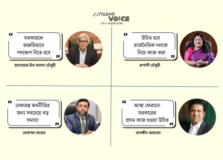 ফরেন ইনভেস্টর চেম্বার অব কমার্স অ্যান্ড ইন্ডাস্ট্রির (ফিকি) সভাপতি রুপালী হক চৌধুরী বলেন, “স্থির রাজনৈতিক পরিবেশ বিনিয়োগ বাড়ানোর মূল চাবিকাঠি। নির্বাচিত সরকারের উচিত সব রাজনৈতিক দলকে নিয়ে সমন্বয় করা এবং ব্যবসায়ীদের সঙ্গে পরামর্শ করে অর্থনীতির সমস্যা চিহ্নিত করা।”