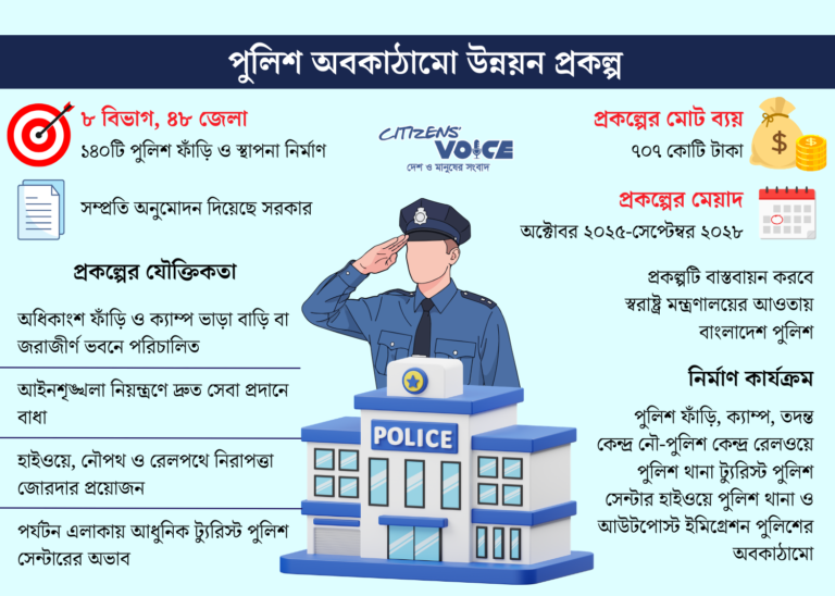 থানা, পুলিশ ফাঁড়ি, ক্যাম্প, নৌ পুলিশ কেন্দ্র, রেলওয়ে পুলিশ থানা ও ট্যুরিস্ট পুলিশ—সবগুলোই দেশের আইনশৃঙ্খলা বজায় রাখতে গুরুত্বপূর্ণ ভূমিকা রাখে কিন্তু অধিকাংশ কেন্দ্রই এখনো ভাড়া বাড়ি বা পুরনো, ঝুঁকিপূর্ণ ভবনে সীমিতভাবে কার্যক্রম চালাচ্ছে।