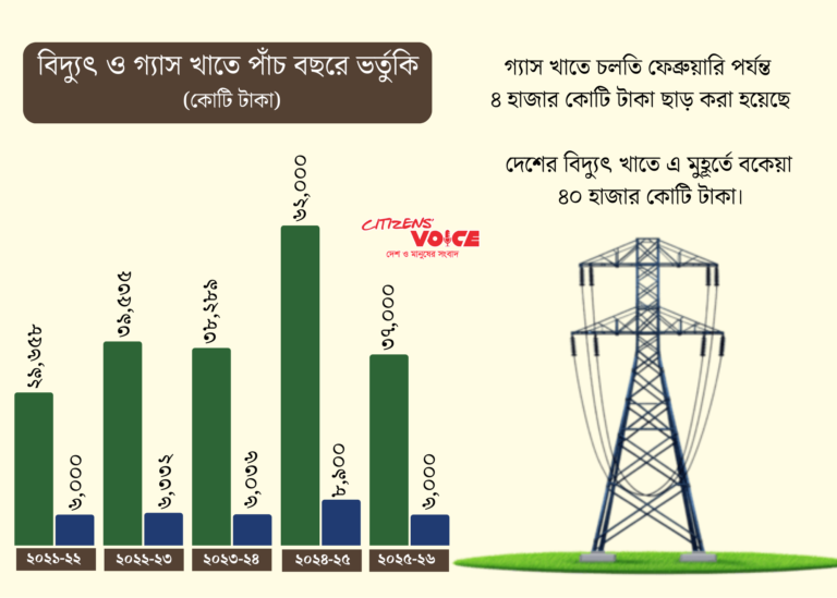 বিদ্যুৎ খাতের মতো গ্যাস খাতেও বিপুল ভর্তুকি দিয়ে এসেছে সরকার। প্রতি বছর প্রায় ৬ হাজার কোটি টাকা এলএনজি আমদানি ও সরবরাহে ভর্তুকি দিতে হচ্ছে। গত পাঁচ বছরে এই খাতে দেওয়া ভর্তুকির পরিমাণ দাঁড়িয়েছে ৩৩ হাজার ২৬৮ কোটি টাকা। ২০২১-২২ থেকে ২০২৫-২৬ অর্থবছরের মধ্যে বরাদ্দকৃত এ অর্থ চলতি বছরের ফেব্রুয়ারি পর্যন্ত প্রায় ৪ হাজার কোটি টাকা ছাড় করা হয়েছে, জানায় পেট্রোবাংলা।