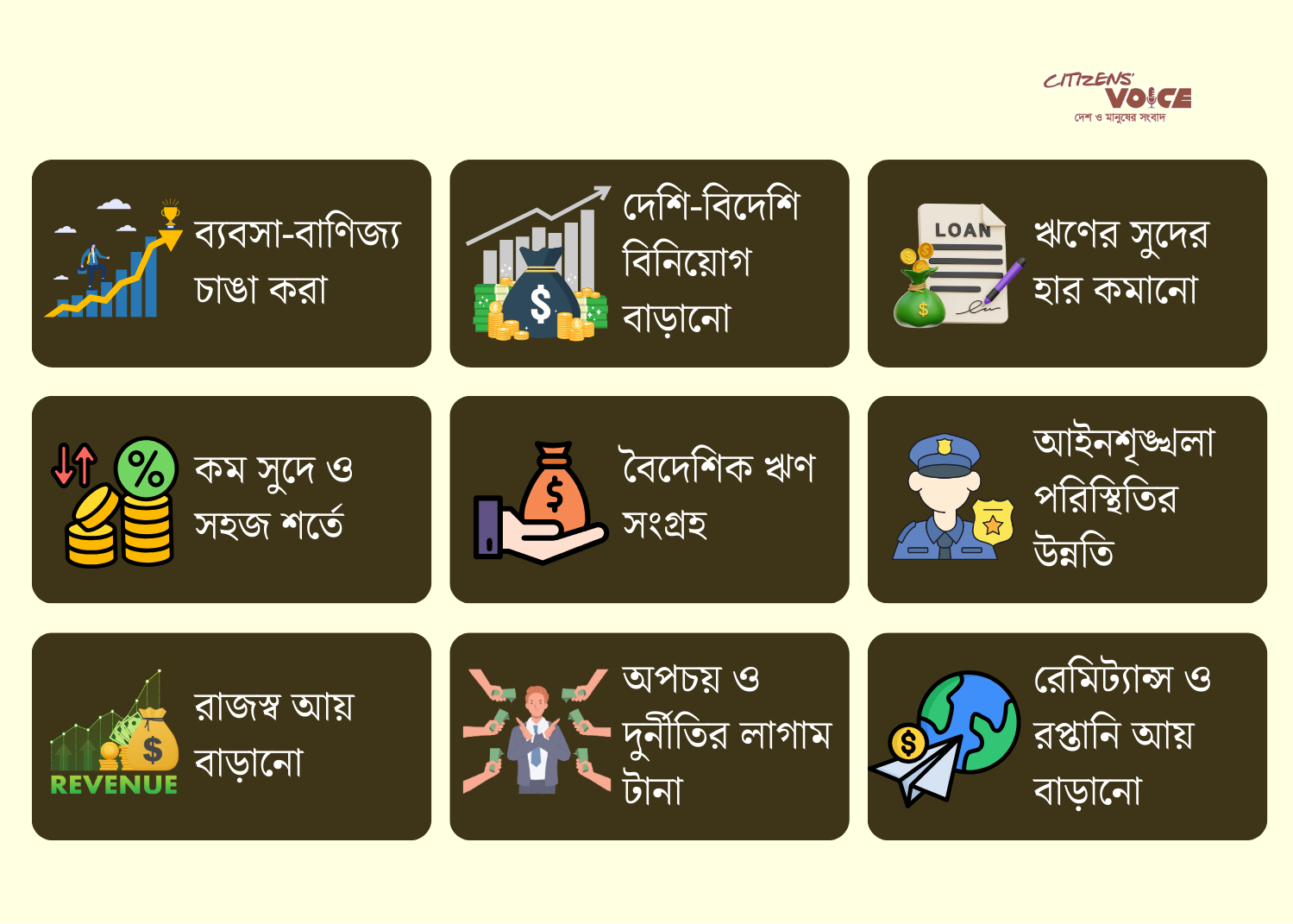 সব মিলিয়ে নতুন সরকারের সামনে সবচেয়ে বড় চ্যালেঞ্জ হলো অর্থনীতিতে আস্থা ফিরিয়ে আনা। ব্যবসা-বাণিজ্য চাঙা হলে, রেমিট্যান্স ও রপ্তানি বাড়লে এবং দুর্নীতির লাগাম টানা গেলে রাজস্ব আয় বাড়বে। আর রাজস্ব বাড়লেই ধীরে ধীরে সরকারের অর্থ সংকট কাটতে শুরু করবে। এখন দেখার বিষয়, সরকার কত দ্রুত কার্যকর পদক্ষেপ নিতে পারে এবং অর্থনীতির স্থবির চাকা আবার কত দ্রুত ঘুরতে শুরু করে।