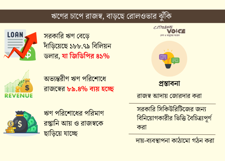 আইএমএফের ভাষায়, ঋণ পরিশোধে রাজস্বের এত বড় অংশ ব্যয় হওয়া ভবিষ্যতে ‘রোলওভার ঝুঁকি’ বাড়ায়। অর্থাৎ পুরোনো ঋণ শোধ করতে নতুন ঋণ নেওয়া কঠিন ও ব্যয়বহুল হয়ে উঠতে পারে।