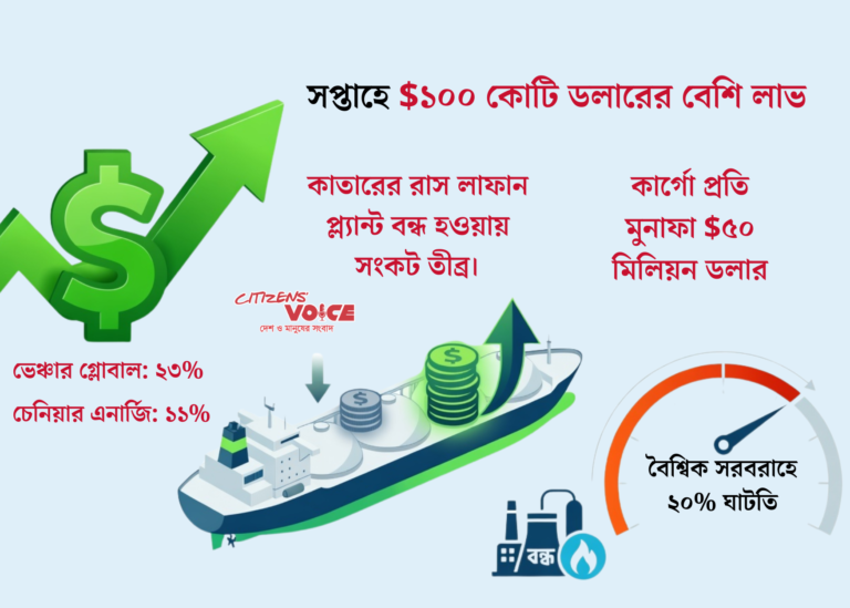 ইরানে চলমান যুদ্ধের প্রভাব বিশ্বব্যাপী গ্যাস বাজারে স্পষ্টভাবে অনুভূত হচ্ছে। এ পরিস্থিতিকে সুযোগ হিসেবে ব্যবহার করে মার্কিন যুক্তরাষ্ট্রের এলএনজি (তরলীকৃত প্রাকৃতিক গ্যাস) কোম্পানিগুলো দ্রুত বৃদ্ধি পেতে থাকা দামকে কাজে লাগাচ্ছে। তাদের লাভের পরিমাণ এমন মাত্রা অর্জন করেছে যে, এক সপ্তাহে রেকর্ড এক বিলিয়ন ডলারের বেশি আয় করার সম্ভাবনা তৈরি হয়েছে।