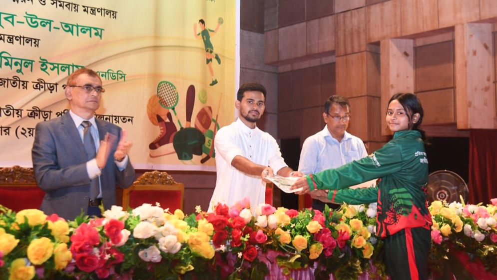 দেশের প্রতিটি কোণে ছড়িয়ে থাকা প্রতিভাবান কিশোর-কিশোরীদের খুঁজে এনে গড়ে তোলার প্রত্যয়ে জাতীয় ক্রীড়া পরিষদের উদ্যোগে সফলভাবে শেষ হলো ‘অনূর্ধ্ব-১৬ ক্রীড়া অন্বেষণ কর্মসূচি ২০২৪–২৫’-এর সমাপনী অনুষ্ঠান। বুধবার জাতীয় ক্রীড়া পরিষদের মিলনায়তনে আয়োজিত এই অনুষ্ঠানে প্রশিক্ষণপ্রাপ্ত তরুণ খেলোয়াড়দের হাতে সম্মাননা তুলে দেন যুব ও ক্রীড়া উপদেষ্টা আসিফ মাহমুদ সজীব ভূঁইয়া।