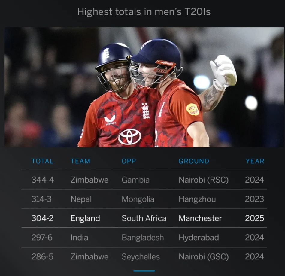 টি-২০ আন্তর্জাতিক ক্রিকেটে সর্বোচ্চ দলীয় সংগ্রহ । ছবি: ক্রিকইনফো