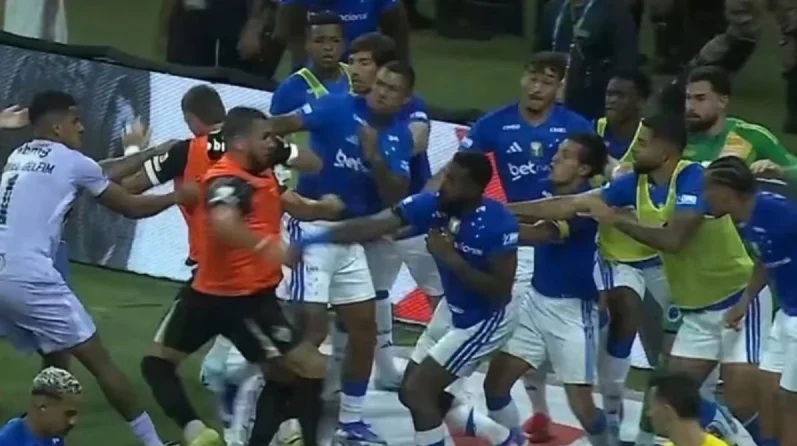 রেফারি পরিস্থিতি শান্ত করতে দ্রুত ছুটে আসেন। কিন্তু তখনই ঘটনার মোড় আরও খারাপ দিকে ঘুরে যায়। পেছন থেকে ক্রুজেইরোর এক খেলোয়াড় এসে এভারসনকে ধাক্কা দিলে তিনি গোলপোস্টে আঘাত পেয়ে মাটিতে পড়ে যান। আর এরপরই দুই দলের খেলোয়াড়দের মধ্যে শুরু হয়ে যায় ভয়াবহ মারামারি।