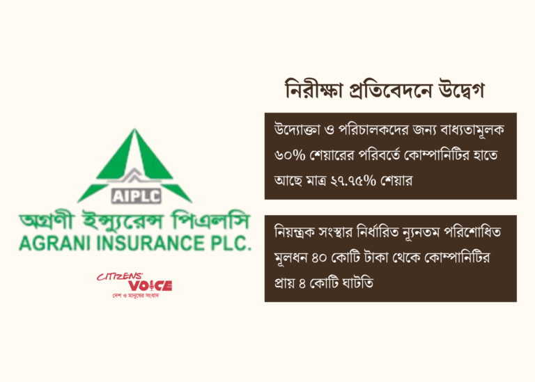 এদিকে ২০২৪ সালের জন্য ঘোষিত স্টক লভ্যাংশের মাধ্যমে মূলধন বৃদ্ধির প্রক্রিয়াও এখনও সম্পন্ন হয়নি। প্রয়োজনীয় অনুমোদন সংশ্লিষ্ট কর্তৃপক্ষ থেকে ঝুলে রয়েছে। একই সঙ্গে সহযোগী প্রতিষ্ঠান অগ্রণী ইন্স্যুরেন্স সিকিউরিটিজ লিমিটেডের হিসাবেও অসঙ্গতি ধরা পড়েছে। একটি লাইসেন্স বাবদ ব্যয় প্রথমে খরচ হিসেবে দেখানো হলেও পরে সেটি মূলধনী ব্যয় হিসেবে সংশোধন করা হয়েছে, যা কোম্পানির নিট সম্পদ ও শেয়ারপ্রতি আয়ের হিসাবকে প্রভাবিত করেছে।