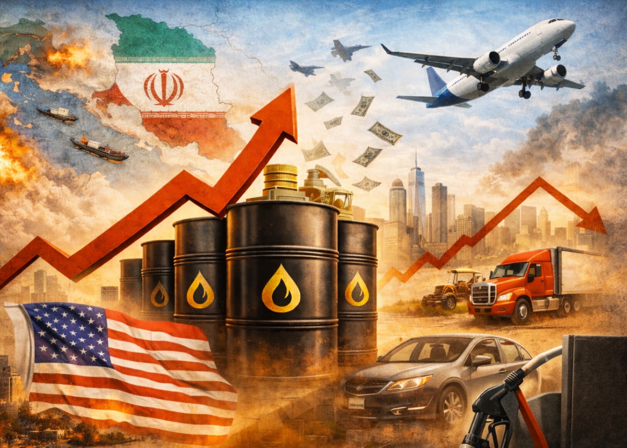 মধ্যপ্রাচ্যের সংঘাত ও তেলের বাজারে অস্থিরতা যুক্তরাষ্ট্রের অর্থনীতি, ব্যবসা ও ভোক্তাদের উপর পরোক্ষভাবে বড় প্রভাব ফেলতে পারে। বিমান, কৃষি ও গাড়িশিল্পের মতো গুরুত্বপূর্ণ খাত থেকে শুরু করে ঘরে বসবাস ও খাদ্য সরবরাহ পর্যন্ত এই ধাক্কা অনুভূত হবে। জ্বালানি খরচ বৃদ্ধির কারণে মূল্যস্ফীতি বাড়তে পারে, যা পরিবারগুলোর ব্যয় কমিয়ে দেশের অর্থনৈতিক প্রবৃদ্ধির গতিকে ধীর করতে পারে।