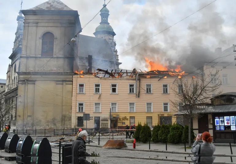 পশ্চিমাঞ্চলের গুরুত্বপূর্ণ শহর লভিভেও ড্রোন হামলার ভয়াবহতা দেখা গেছে। একটি ড্রোন শহরের ঐতিহাসিক এলাকায় একটি পুরোনো ভবনে আঘাত হানে, যা একটি গির্জার পাশেই অবস্থিত। এতে ঐতিহ্যবাহী স্থাপনার কিছু অংশ ক্ষতিগ্রস্ত হয়েছে বলে জানা গেছে। স্থানীয় প্রশাসন জানিয়েছে, ওই এলাকায় আন্তর্জাতিকভাবে স্বীকৃত ঐতিহ্যবাহী স্থাপনারও ক্ষতি হয়েছে।