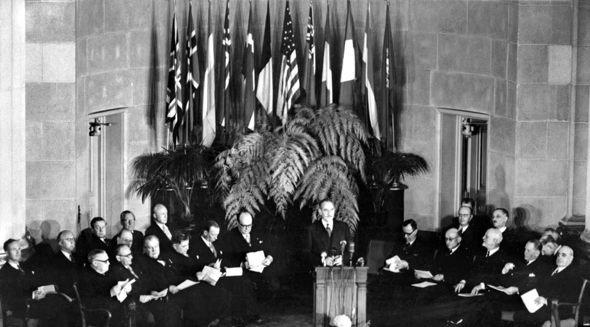 দ্বিতীয় বিশ্বযুদ্ধের পরে ইউরোপের পরিস্থিতি ছিল ভয়াবহ। সেই যুদ্ধে অন্তত ৩ কোটি ৬৫ লাখ মানুষ নিহত হন, যাদের মধ্যে ১ কোটি ৯০ লাখ ছিলেন বেসামরিক। এই বিপর্যয় শুধু জনসংখ্যা নয়, রাষ্ট্রের স্থিতি, অর্থনীতি এবং রাজনৈতিক আত্মবিশ্বাসও ভেঙে দিয়েছিল। পূর্ব ইউরোপে সোভিয়েত-ঘেঁষা কমিউনিস্ট প্রভাব দ্রুত বাড়ছিল। ১৯৪৮ সালে গোপনে সোভিয়েতের সাহায্য নিয়ে চেকোস্লোভাকিয়া কমিউনিস্ট পার্টি দেশটির গণতান্ত্রিক সরকার উৎখাত করে।