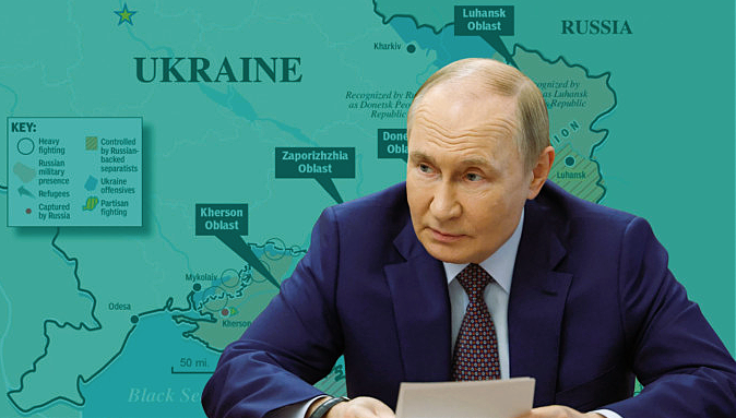 ২০২২ সালের ফেব্রুয়ারিতে পুতিন পূর্ণমাত্রার সামরিক অভিযান শুরু করেন। তাঁর ভাষ্য ছিল—“ডনবাসের রুশপন্থি জনগণকে রক্ষা করা”। এরপর মস্কো দ্রুত একাধিক অঞ্চলে ‘গণভোট’ আয়োজন করে, যার মাধ্যমে দোনেৎস্ক ও লুহানস্কসহ চারটি ইউক্রেনীয় অঞ্চলকে রাশিয়ার অন্তর্ভুক্ত ঘোষণা করা হয়।