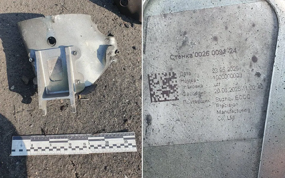 ইউক্রেনের পররাষ্ট্রমন্ত্রী আন্দ্রি সাইবিহা ছবি পোস্ট করেছেন একটি ভূপাতিত ড্রোনের অংশের, যেখানে চীনের একটি কোম্পানির ছাপ স্পষ্ট দেখা যাচ্ছে।