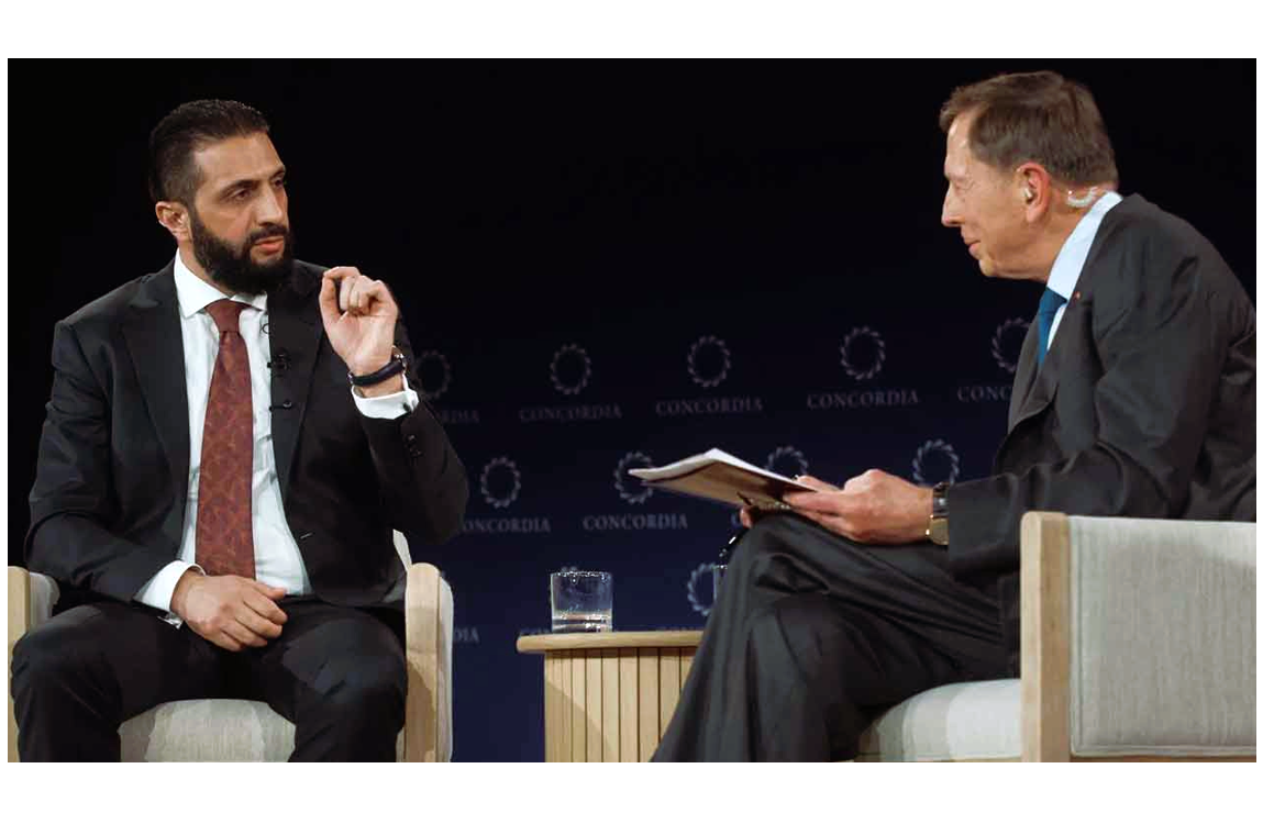 আল জাজিরার প্রতিবেদনে বলা হয়েছে, নিউইয়র্কের কনকর্ডিয়া বার্ষিক সম্মেলনে এই বিরল বৈঠক অনুষ্ঠিত হয়। পেট্রেয়াস একসময় আল-শারআকে গ্রেপ্তার করেছিলেন এবং পরে সিআইএ-এর পরিচালক হিসেবেও দায়িত্ব পালন করেছেন।