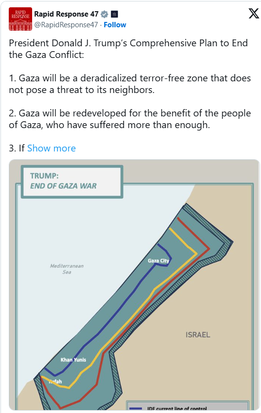 ১০. গাজার পুনর্গঠন নিয়ে ট্রাম্পের অর্থনৈতিক উন্নয়ন পরিকল্পনা বাস্তবায়নের জন্য বিশেষজ্ঞদের নিয়ে প্যানেল তৈরি করা হবে। যারা মধ্যপ্রাচ্যে আধুনিক ক্রমবর্ধমান শহর গড়েছেন তাদেরকে এই প্যানেলে রাখা হবে। ভবিষ্যতে গাজায় কর্মসংস্থান তৈরির জন্য বিনিয়োগ টানতে যথাযথ বিনিয়োগ প্রস্তাব ও চমৎকার উন্নয়ন পরিকল্পনা তৈরি করতে পারে এমন সুপরিচিত আন্তর্জাতিক প্রতিষ্ঠানগুলোকে এ কাজে প্রাধান্য দেওয়া হবে।