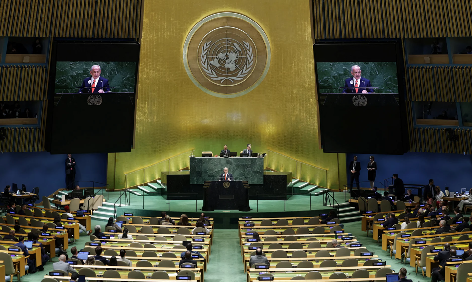 লাখ লাখ ফিলিস্তিনির রক্ত যাঁর হাতে, তাঁর আবার ‘মান-অপমান’। তবু জাতিসংঘের সাধারণ পরিষদের মঞ্চ বলে কথা। সেদিন ইসরায়েলি প্রধানমন্ত্রী বেনিয়ামিন নেতানিয়াহু বক্তৃতা শুরু করতেই একের পর এক প্রতিনিধি ওয়াকআউট করেন। মুহূর্তেই সভাকক্ষ প্রায় ফাঁকা হয়ে পড়ে। ‘গাজার কসাই’ নামে কুখ্যাত নেতানিয়াহু তখন মঞ্চে দাঁড়িয়ে রইলেন অচঞ্চল মুখে। মাথা ঘুরিয়ে চারদিকে তাকালেন, যেন কিছুই হয়নি। তবু তাঁর অস্বস্তি চোখ এড়ায়নি কারও।