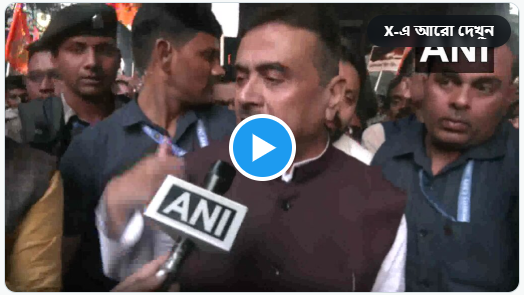শুভেন্দুর আশপাশের উপস্থিত মানুষদের “জয় শ্রী রাম” স্লোগান দিতে শোনা যায়।