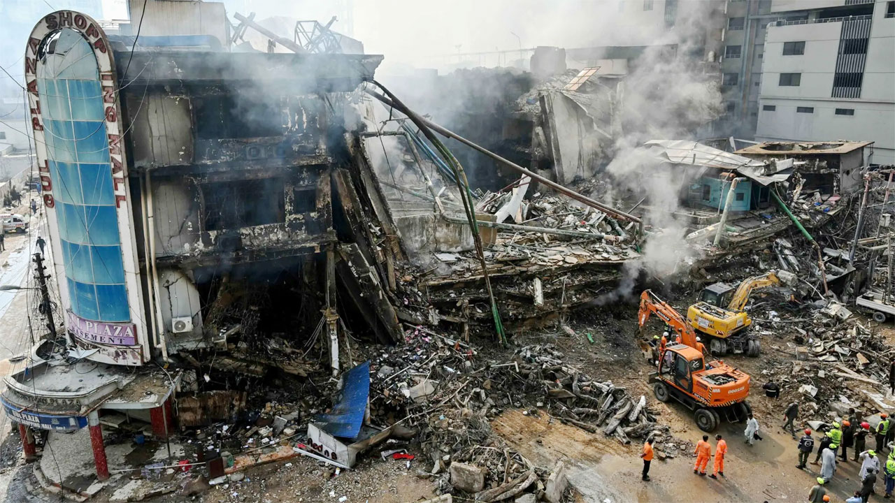 পাকিস্তানের বাণিজ্যিক রাজধানী হিসেবে পরিচিত করাচি শহরের অন্যতম ব্যস্ত শপিং কমপ্লেক্স গুল প্লাজার একটি দোকান থেকে ৩০ জনের দগ্ধ মরদেহ উদ্ধার করা হয়েছে। এদের মধ্যে এ পর্যন্ত ১৫ জনের পরিচয় উদ্ধার করা সম্ভব হয়েছে। সূত্র: এএফপি