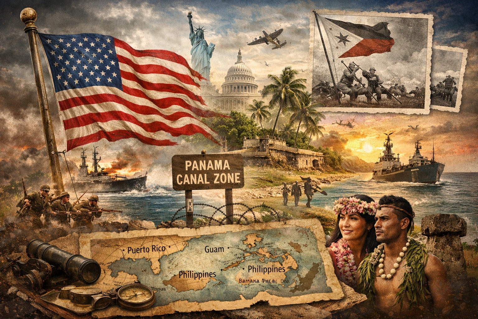 ১৮৯৮ সালের স্প্যানিশ–আমেরিকান যুদ্ধ যুক্তরাষ্ট্রের ইতিহাসে এক মোড় ঘোরানো অধ্যায়। এই যুদ্ধের সময় যুক্তরাষ্ট্র কিউবা ও পুয়ের্তো রিকোতে হামলা চালায়। যুদ্ধ শেষে স্বাক্ষরিত ট্রিটি অব প্যারিস–এর মাধ্যমে স্পেন তার আমেরিকান উপনিবেশগুলোর নিয়ন্ত্রণ হারায়, আর যুক্তরাষ্ট্র আত্মপ্রকাশ করে নতুন এক সাম্রাজ্যিক শক্তি হিসেবে।