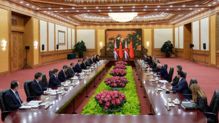 ব্রিটিশ প্রধানমন্ত্রী কিয়ার স্টারমার বৃহস্পতিবার বেইজিংয়ে চীনের প্রেসিডেন্ট শি জিনপিংয়ের সঙ্গে বৈঠক করেছেন। দুই দেশের অর্থনৈতিক সম্পর্ক আরও শক্তিশালী করার লক্ষ্যে এই আলোচনা অনুষ্ঠিত হয়, যা দীর্ঘদিনের অবিশ্বাস ও তিক্ততার পর দ্বিপক্ষীয় সম্পর্ক উন্নয়নের একটি গুরুত্বপূর্ণ অগ্রগতির ইঙ্গিত দিচ্ছে। সূত্র: রয়টার্স