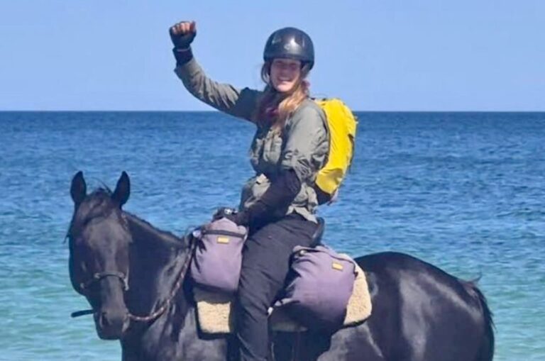 প্রিয় ঘোড়া ফ্যাবলের পিঠে চেপে অস্ট্রেলিয়ার পূর্ব প্রান্ত থেকে পশ্চিম প্রান্ত পর্যন্ত প্রায় ৪ হাজার ৪০০ কিলোমিটার পথ পাড়ি দিয়েছেন মার্কিন অশ্বারোহী জিন জ্যাগোলা। সূত্র: এবিসি নিউজ