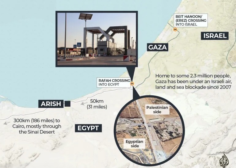 তারা আরো জানায়, গাজায় প্রবেশ ও প্রস্থানকারীদের ‘ফিলাডেলফি করিডোর’ নামে পরিচিত ইসরায়েলি-নিয়ন্ত্রিত সীমান্ত অঞ্চলের মধ্য দিয়ে প্রায় ২.৫ কিলোমিটার (১.৫ মাইল) হেঁটে যেতে হবে।