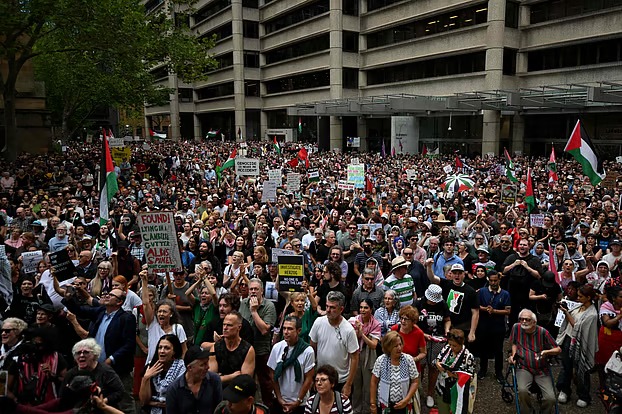 ইসরায়েলি প্রেসিডেন্ট আইজ্যাক হারজগের রাষ্ট্রীয় সফরকে কেন্দ্র করে আজ সোমবার সিডনির রাজপথ উত্তাল হয়ে উঠেছে। একদিকে বন্ডাই সৈকতে নিহত ব্যক্তিদের প্রতি শ্রদ্ধা নিবেদন, অন্যদিকে নগরের প্রাণকেন্দ্র টাউন হলে ইসরায়েলি প্রেসিডেন্টের সফরের প্রতিবাদে হাজারো মানুষের বিক্ষোভ—এই দুই বিপরীতমুখী চিত্রে দিনভর টালমাটাল ছিল অস্ট্রেলিয়ার এই বাণিজ্যিক রাজধানী।