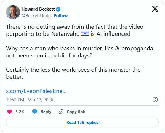 একই সময়ে এক্স (সাবেক টুইটার) প্ল্যাটফর্মে গুজব ছড়িয়ে পড়ে যে ইসরায়েল, মার্কিন যুক্তরাষ্ট্র এবং ইরানের মধ্যে চলমান সংঘাতের সময় ইসরায়েলি প্রধানমন্ত্রী মারা গেছেন। তবে ফ্যাক্ট-চেক বিশ্লেষণে এসব দাবি মিথ্যা বলে প্রমাণিত হয়েছে।