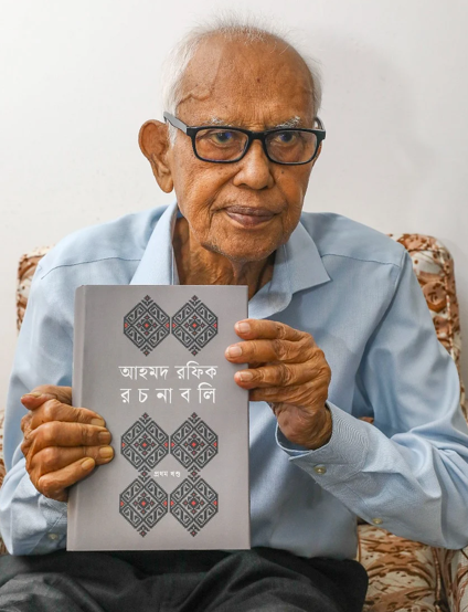 আহমদ রফিক: মনটা ভরে গেল। বই বের হওয়া লেখকের জন্য খুব আনন্দের, উপভোগের। ১৯৫৮ সালে আমার প্রথম বই যখন বের হলো, কী ভালোটাই না লেগেছিল। ‘শিল্প ও সংস্কৃতিজীবন’—এটার মধ্যে কতগুলো খুব ভালো প্রবন্ধ ছিল। স্থানীয় লেখকদের ওপরও কিছু লেখা ছিল। প্রথম প্রবন্ধটির নাম ছিল ‘কাব্যের সপক্ষে’। শেলির একটি প্রবন্ধ আছে ‘ইন ডিফেন্স অব পোয়েট্রি’। সেটার অনুসরণে আমার মতো করে লেখা। ঢাকা বিশ্ববিদ্যালয়ের রেফারেন্স লিস্টে বইটা ছিল। এটা একজন লেখকের জন্য যথেষ্ট আনন্দের বিষয়। এরপর তো বইয়ের পর বই বেরিয়েছে।