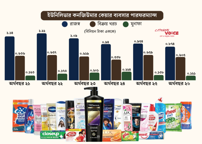 ভোক্তা পণ্য খাতের বহুজাতিক প্রতিষ্ঠান ইউনিলিভার কনজ্যুমার কেয়ারের চলতি বছরের প্রথম প্রান্তিকে মুনাফা কমেছে প্রায় ১২ শতাংশ। বিক্রি ধীরগতির পাশাপাশি মূল কোম্পানিকে আবার রয়্যালটি পরিশোধ শুরু হওয়ায় কোম্পানির আয় চাপে পড়েছে।