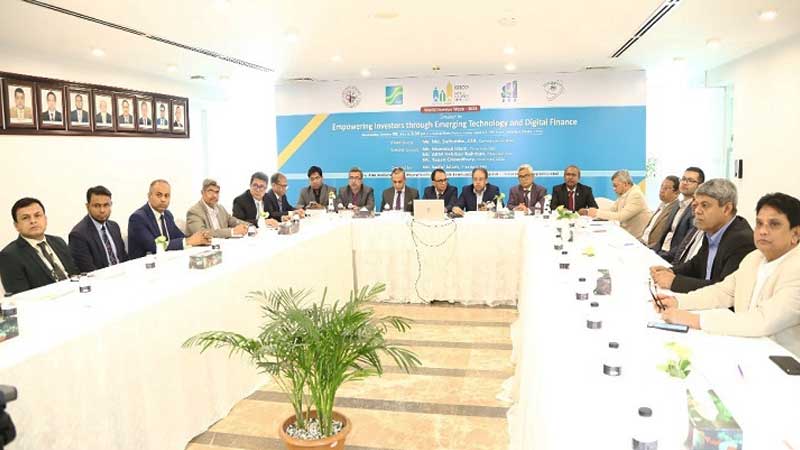 বিশ্ব বিনিয়োগ সপ্তাহ ২০২৫ উপলক্ষে ঢাকা স্টক এক্সচেঞ্জ (ডিএসই), চিটাগং স্টক এক্সচেঞ্জ (সিএসই), ডিএসই ব্রোকারস অ্যাসোসিয়েশন অব বাংলাদেশ (ডিবিএ) ও সেন্ট্রাল ডিপোজিটরি বাংলাদেশ লিমিটেড (সিডিবিএল) যৌথ উদ্যোগে ‘উদীয়মান প্রযুক্তি ও ডিজিটাল অর্থায়নের মাধ্যমে বিনিয়োগকারীদের ক্ষমতায়ন’ শীর্ষক সেমিনার গতকাল অনুষ্ঠিত হয়।