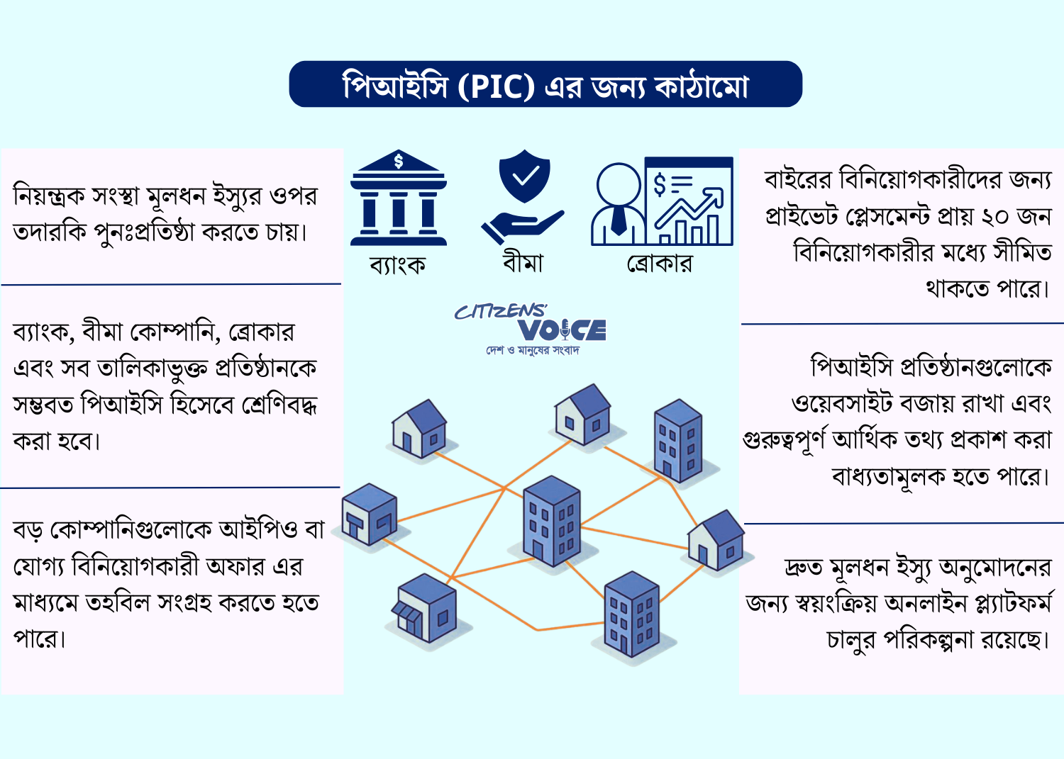 বাংলাদেশ সিকিউরিটিজ অ্যান্ড এক্সচেঞ্জ কমিশন একটি পূর্ণাঙ্গ কাঠামো চালু করতে যাচ্ছে, যা পাবলিক ইন্টারেস্ট কোম্পানি সংজ্ঞায়িত করবে এবং তাদের মূলধন উত্তোলন কার্যক্রম নিয়ন্ত্রণ করবে। লক্ষ্য হলো মূলধন উত্তোলনে নিয়ন্ত্রণ পুনঃস্থাপন এবং সিকিউরিটিজ বাজারে সম্ভাব্য কেলেঙ্কারি প্রতিরোধ করা।